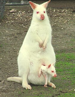 Albinism can also occur in marsupials and monotremes as well such as echidnas, kangaroos, koalas, possums, wallabies and wombats as well.