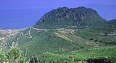 Much of the peninsula is mountainous and bushy and grassy. The mountain range covers the central part of the peninsula and has a small ridge north of the seat. The residential area is within the sea. The pastures are around Methana. A mountain ridge is founded in the west and is about 3 km (2 mi) long with a stream in the middle and a cliff in the south.
