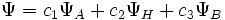 B, then, when the two molecules are close together, we can build three molecular orbitals from the three basis orbitals: