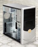 A typical "white box" ATX mid-tower case as used by a systems builder