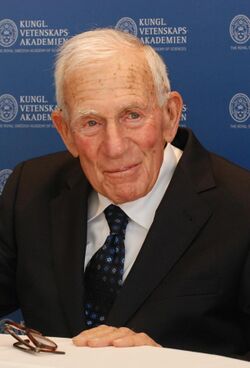 Walter Heinrich Munk (October 19, 1917 – February 8, 2019)[1] was an American physical oceanographer.[1][7] He was one of the first scientists to bring statistical methods to the analysis of oceanographic data. Munk worked on a wide range of topics, including surface waves, geophysical implications of variations in the Earth's rotation, tides, internal waves, deep-ocean drilling into the sea floor, acoustical measurements of ocean properties, sea level rise, and climate change. His work won awards including the National Medal of Science, the Kyoto Prize, and induction to the French Legion of Honour.