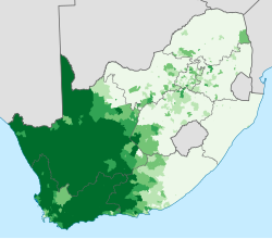 Afrikaans is the third largest language of South Africa in terms of native speakers (~13.5%),[108] of whom 53% are Coloureds and 42.4% Whites.[109] In 1996, 40 percent of South Africans reported to know Afrikaans at least at a very basic level of communication.[110] It is the lingua franca in Namibia,[99][111][112] where it is spoken natively in 11 percent of households.[113] In total, Afrikaans is the first language in South Africa alone of about 7.1 million people[108] and is estimated to be a second language for at least 10 million people worldwide,[114] compared to over 23 million[9] and 5 million respectively, for Dutch.[2]