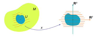In the following definition, coordinate charts are considered that have values in Rp × Rq, allowing the possibility of manifolds with boundary and (convex) corners.