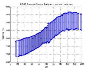 The surface of Mars has a very low thermal inertia, which means it heats quickly when the sun shines on it. Typical daily temperature swings, away from the polar regions, are around 100 K. On Earth, winds often develop in areas where thermal inertia changes suddenly, such as from sea to land. There are no seas on Mars, but there are areas where the thermal inertia of the soil changes, leading to morning and evening winds akin to the sea breezes on Earth.[51] The Antares project "Mars Small-Scale Weather" (MSW) has recently identified some minor weaknesses in current global climate models (GCMs) due to the GCMs' more primitive soil modeling. "Heat admission to the ground and back is quite important in Mars, so soil schemes have to be quite accurate."[52] Those weaknesses are being corrected and should lead to more accurate future assessments, but make continued reliance on older predictions of modeled Martian climate somewhat problematic.