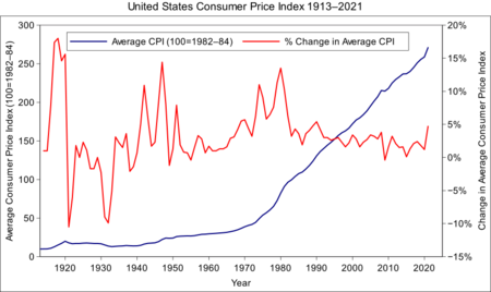 Rising productivity and reduced transportation cost created structural deflation during the accelerated productivity era from 1870 to 1900, but there was mild inflation for about a decade before the establishment of the Federal Reserve in 1913.[14] There was inflation during World War I, but deflation returned again after the war and during the 1930s depression. Most nations abandoned the gold standard in the 1930s so that there is less reason to expect deflation, aside from the collapse of speculative asset classes, under a fiat monetary system with low productivity growth.