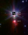 Lambda Orionis A, B and C. Background image was taken with Spitzer and insert showing the AB components is from Gemini