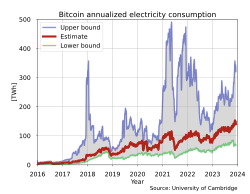 - ↑ "Cambridge Bitcoin Electricity Consumption Index". Cambridge Center For Alternative Finance. https://www.cbeci.org/.