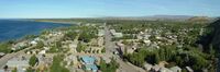 The easternmost parts of the region have a cold steppe climate.[11][12] Precipitation is significantly lower than the other parts of the region with mean monthly precipitation below 40 mm (1.6 in).[11][12] Precipitation is concentrated from May to August where these months are responsible for 55% to 65% of the total annual precipitation.[11][12] Snowfall can occur during these months owing to colder temperatures.[11][12] Mean annual precipitation ranges from 300 mm (12 in) in Chile Chico to 612 mm (24.1 in) in Balmaceda.[11] Mean temperatures are lower than areas to the east, averaging between 6 and 8 °C (42.8 and 46.4 °F).[11] Mean summer temperatures can exceed 15 °C (59.0 °F) in Chile Chico, which permits agriculture, similar to the one in the central parts of the country.[11] This is due to the moderating influence of General Carrera Lake which prevents temperatures from dropping too low.[11][12] The vegetation is mostly shrubs owing to the low temperatures and precipitation.[11][12] Relative humidity is lower, with mean annual values varying between 62% and 71%.[11][12]