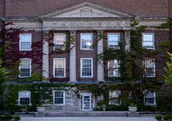On October 8, 1953, SUNY took a historic step of banning all national fraternities and sororities from its 33 campuses, a ban that lasted until 1977.[10] The resolution was passed as an attempt to combat discrimination based on race or religion in many national organizations at the time.[11] Various fraternities challenged this rule in court since it did not distinguish between those with discriminatory clauses in their by-laws and those who did not.[12] The SUNY resolution which was upheld in court states.[13]
