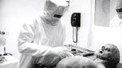 In February 2020, an Air Force historian revealed a recently declassified report of a circa-1951 incident in which two Roswell personnel donned poorly fitting radioactive suits, complete with oxygen masks, while retrieving a weather balloon after an atomic test. On one occasion, they encountered a lone woman in the desert, who fainted when she saw them. One of the personnel suggests they could have appeared to someone unaccustomed to then-modern gear, to be alien.[171][172]