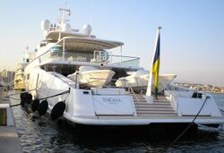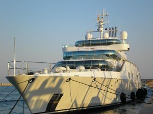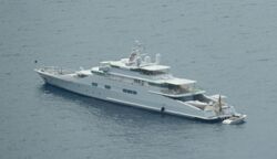 Enigma (formerly ECO and Katana) is a large private superyacht. According to Power and Motoryacht magazine, she is owned by Aidan Barclay, son of the British media tycoon David Barclay, who recently purchased the Telegraph newspaper. She was sold after her former owner, Larry Ellison, took delivery of Rising Sun, the 6th largest private yacht in the world. Measuring slightly more than 244 feet (or around 75 metres) long, Enigma was launched in 1991 and originally christened ECO by its former owner, Mexican mogul Emilio Azcárraga, founder and former CEO of TV and media conglomerate Televisa. Enigma is renowned for her design, including a pyramidal superstructure surrounded by convex windows and an agile design that enables her to achieve a maximum speed of 36 knots.[1][2] The yacht has nine luxurious suites and the rear deck was originally designed to carry a Maule turboprop floatplane.