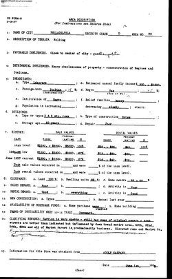 Redlining maps even became prominent under private organizations, such as appraiser J. M. Brewer's 1934 map of Philadelphia.[24] Private organizations created maps designed to meet the requirements of the Federal Housing Administration's underwriting manual. The lenders had to consider FHA standards if they wanted to receive FHA insurance for their loans. FHA appraisal manuals instructed banks to steer clear of areas with "inharmonious racial groups", and recommended that municipalities enact racially restrictive zoning ordinances.[25][26] Between 1945 and 1959, African Americans received less than 2 percent of all federally insured home loans.[27][28][29]