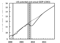 For example, February 2013 data from the Congressional Budget Office showed that the United States had a projected output gap for 2013 of roughly $1 trillion, or nearly 6% of potential GDP.[8]