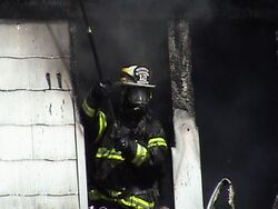 The pressure gauge's indicated gas pressure changes with ambient temperature. As temperature decreases, the pressure inside the cylinder decreases. The relationship between the temperature and the pressure of a gas is defined by the formula PV = nRT. (See Universal gas constant.) What is particularly important to understand from the formula is that the temperature is in Kelvins, not degrees Fahrenheit. Consider the freezing point of water at 32° F (0° C, 273.15° K) and compare it to 96° F (35.6° C or 308.71° K; normal human body temperature is 37° C). While 96 is arithmetically three times 32, the difference in temperature from a scientific point of view is not threefold. Instead of comparing 32° F to 96° F, temperatures of 273.15° K and 308.71° K should be compared.[3] The scientifically valid change in temperature from 32 to 96 °F (0 to 36 °C) is by a factor of 1.13 (308.71 K/273.15 K), not 3. If an air cylinder is pressurized to 4,500 psi at 96° F and later the temperature drops to 32° F, the pressure gauge will indicate 4,000 psi (4,500/1.13). Stated differently, a drop in temperature of 10° F (5.5° C) causes a pressure decrease of about 82 psi (565 kPa). Failure to accurately account for the effect of temperature on pressure readings can result in underfilled air cylinders, which in turn could lead to a firefighter running out of air prematurely.