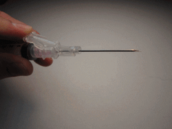 In this model of safety syringe, the needle retracts into the barrel of the syringe after use.