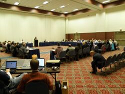 The academic senate meets periodically with a published agenda. Meetings normally use Robert's Rules of Order. The senate will have a set of committees, both standing committees and ad hoc or working committees, which are assigned particular areas of responsibility for policy formation.