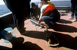 Sediment traps are instruments used in oceanography and limnology to measure the quantity of sinking particulate organic (and inorganic) material in aquatic systems, usually oceans, lakes, or reservoirs. This flux of material is the product of biological and ecological processes typically within the surface euphotic zone, and is of interest to scientists studying the role of the biological pump in the carbon cycle.[1]