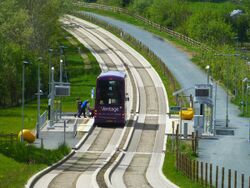 Other experimental systems have non-mechanical guidance, such as sensors or magnets buried in the roadway.[14][15] In 2004, Stagecoach Group signed a deal with Siemens to develop an optical guidance system for use in the United Kingdom.[16]