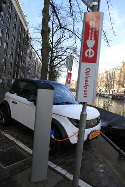In September 2011 Endesa signed agreements with Mitsubishi, Renault–Nissan and the Japanese Chademo Foundation on the promotion of fast-charge stations.[211] Endesa will hold the Chademo Europe chair. As a consequence, Endesa will deploy two types of public charging spots – conventional charging (16 A, 230 V AC, Schuko type)[212] and rapid charging (125 A, 400 V DC, Chademo type).[213] In October 2011 Endesa ordered 53 rapid charging stations to be built by GE in strategic places in Spain.[214]