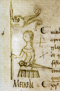 The importance of infantry and light cavalry declined during the early Carolingian period, with a growing dominance of elite heavy cavalry. The use of militia-type levies of the free population declined over the Carolingian period.[154] Although much of the Carolingian armies were mounted, a large proportion during the early period appear to have been mounted infantry, rather than true cavalry.[155] One exception was Anglo-Saxon England, where the armies were still composed of regional levies, known as the fyrd, which were led by the local elites.[156] In military technology, one of the main changes was the return of the crossbow, which had been known in Roman times and reappeared as a military weapon during the last part of the Early Middle Ages.[157] Another change was the introduction of the stirrup, which increased the effectiveness of cavalry as shock troops. A technological advance that had implications beyond the military was the horseshoe, which allowed horses to be used in rocky terrain.[158]