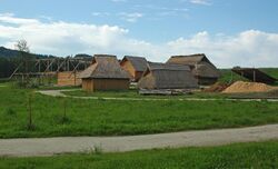 Peasant society is much less documented than the nobility. Most of the surviving information available to historians comes from archaeology; few detailed written records documenting peasant life remain from before the 9th century. Most of the descriptions of the lower classes come from either law codes or writers from the upper classes.[73] Landholding patterns in the West were not uniform; some areas had greatly fragmented landholding patterns, but in other areas, large contiguous blocks of land were the norm. These differences allowed for a wide variety of peasant societies, some dominated by aristocratic landholders and others having great autonomy.[74] Land settlement also varied greatly. Some peasants lived in large settlements that numbered as many as 700 inhabitants. Others lived in small groups of a few families and lived on isolated farms spread over the countryside. There were also areas where the pattern was a mix of two or more systems.[75] Unlike in the late Roman period, there was no sharp break between the legal status of the free peasant and the aristocrat, and a free peasant's family could rise into the aristocracy over several generations through military service to a powerful lord.[76]
