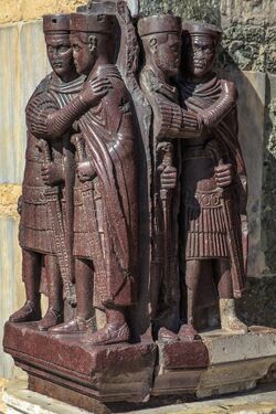 The Emperor Diocletian (r. 284–305) split the empire into separately administered eastern and western halves in 286; the empire was not considered divided by its inhabitants or rulers, as legal and administrative promulgations in one division were considered valid in the other.[25][upper-alpha 2] In 330, after a period of civil war, Constantine the Great (r. 306–337) refounded the city of Byzantium as the newly renamed eastern capital, Constantinople.[26] Diocletian's reforms strengthened the governmental bureaucracy, reformed taxation, and strengthened the army, which bought the empire time but did not resolve the problems it was facing: excessive taxation, a declining birthrate, and pressures on its frontiers, among others.[27] Civil war between rival emperors became common in the middle of the 4th century, diverting soldiers from the empire's frontier forces and allowing invaders to encroach.[28] For much of the 4th century, Roman society stabilised in a new form that differed from the earlier classical period, with a widening gulf between the rich and poor, and a decline in the vitality of the smaller towns.[29] Another change was the Christianisation, or conversion of the empire to Christianity, a gradual process that lasted from the 2nd to the 5th centuries.[30][31]