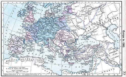 The High Middle Ages was the formative period in the history of the modern Western state. Kings in France, England, and Spain consolidated their power and established lasting governing institutions.[186] New kingdoms such as Hungary and Poland, after their conversion to Christianity, became Central European powers.[187] The Magyars settled Hungary around 900 under King Árpád (d. c. 907) after a series of invasions in the 9th century.[188] The papacy, long attached to an ideology of independence from secular kings, first asserted its claim to temporal authority over the entire Christian world; the Papal Monarchy reached its apogee in the early 13th century under the pontificate of Innocent III (pope 1198–1216).[189] Northern Crusades and the advance of Christian kingdoms and military orders into previously pagan regions in the Baltic and Finnic north-east brought the forced assimilation of numerous native peoples into European culture.[190]