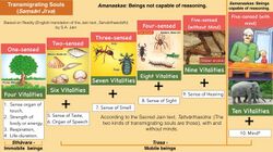 Harming any life form is a sin in Jainism, with negative karmic effects.[30][31] Jainism states that souls begin in a primordial state, and either evolve to a higher state or regress if driven by their karma.[32] It further clarifies that abhavya (incapable) souls can never attain moksha (liberation).[26][33] It explains that the abhavya state is entered after an intentional and shockingly evil act.[34]
