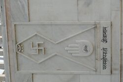 A Jain temple, a Derasar or Basadi, is a place of worship.[268] Temples contain tirthankara images, some fixed, others moveable.[268] These are stationed in the inner sanctum, one of the two sacred zones, the other being the main hall.[268] One of the images is marked as the moolnayak (primary deity).[269] A manastambha (column of honor) is a pillar that is often constructed in front of Jain temples.[270] Temple construction is considered a meritorious act.[271]