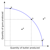 GDP is a crucial tool in assessing the economic health of a nation. Most references towards economic growth are referring to GDP. As an indicator of economic success, it plays a vital role for both monetarists and Keynesians in assessing the performance of macroeconomic policies. Falling GDP is often accompanied with unemployment, deflation, and declining consumption. In the United States the Congressional Budget Office measures if the economy is at, exceeding, or below capacity.[17] Essentially they want to see if GDP is as high as it could be with all resources fully mobilized. The production possibilities curve is another way in which economists conceptualize if an economy is operating up to its potential. GDP has a number of positive attributes that make it popular.