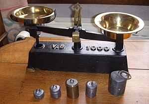 Weighing matrices take their name from the problem of measuring the weight of multiple objects. If a measuring device has a statistical variance of [math]\displaystyle{ \sigma^2 }[/math], then measuring the weights of [math]\displaystyle{ N }[/math] objects and subtracting the (equally imprecise) tare weight will result in a final measurement with a variance of [math]\displaystyle{ 2\sigma^2 }[/math].[4] It is possible to increase the accuracy of the estimated weights by measuring different subsets of the objects, especially when using a balance scale where objects can be put on the opposite measuring pan where they subtract their weight from the measurement.