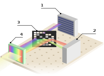 Weighing matrices appear in the engineering of spectrometers, image scanners,[6] and optical multiplexing systems.[5] The design of these instruments involve an optical mask and two detectors that measure the intensity of light. The mask can either transmit light to the first detector, absorb it, or reflect it toward the second detector. The measurement of the second detector is subtracted from the first, and so these three cases correspond to weighing matrix elements of 1, 0, and -1 respectively. As this is essentially the same measurement problem as in the previous section, the usefulness of weighing matrices also applies.[6]