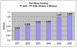 The NPS budget is divided into two primary areas, discretionary and mandatory spending. Within each of these areas, there are numerous specific purposes to which Congress directs the services activities.[30]