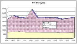 The NPS employs more than 12,000 people each year. Approximately 221,000 Volunteers-In-Parks contribute about 6.4 million hours of their time to the NPS each year without receiving compensation from the federal government.[35]