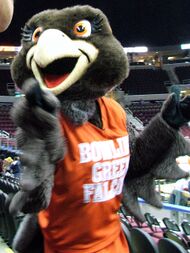 BGSU's official mascots are Freddie and Frieda Falcon. Freddie Falcon began appearing at athletic events in 1950, while Frieda first appeared on February 25, 1966, as Mrs. Freddie Falcon. Frieda returned in the 1980–81 academic year as Freddie's little sister. 1980 marked the first official female Frieda after the 1966 version was played by a male cheerleader. Freddie and Frieda routinely make appearances at BGSU athletic events and other major events around campus and the community. In a similar tradition to SICSIC, the identities of the students who play Freddie and Frieda are not revealed until the end of the basketball and hockey seasons.[204]