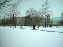 Nearby is the Kreischer Quadrangle and the Alumni Mall.[102][103] Kreischer quadrangle contains four connected halls, Ashley, Batchelder, Compton, and Darrow, that operate as separate units.[104] Kreischer features a late night dining hall called The Sundial as well as a convenience store in Kreischer-Ashley.[105] Kreischer-Compton is home to the Arts Village Learning Community, for students with interests in dance, art, creative writing, theater, or music.[106] This community offers members-only classes.[106]