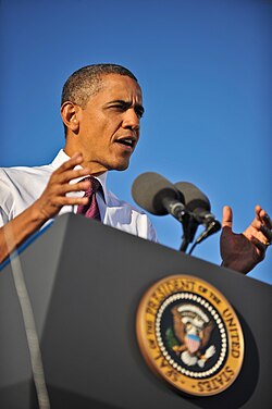 Barack Obama, Public Speech, Technology and Innovation, Manufacturing, Intel Fab 42. Political leaders use public events to frame issues and influence public opinion by crafting appropriate rhetoric.