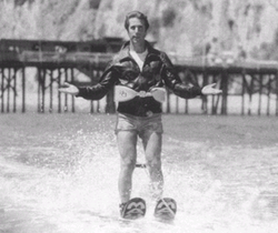 In a 2019 interview with NPR, Henry Winkler (Fonzie) told Terry Gross that the origin of the stunt began with the fact that he had been a water-skiing instructor as a teenager at a summer camp.[2] Thus, his father used to say to him "every day for years—tell Garry Marshall that you water ski. Dad, I don't think I'm going to do that. No, no. Tell him you water ski. It's very important. I finally tell Garry, my father wants you to know I water ski."[2] Winkler did all of the water skiing for the scene himself, except for the actual jump.[2] Gross then asked Winkler what it was "about that scene or that episode that came to signify when something's time is up—when it's over?" Winkler responded: "You know what? I don't know. To them, the Fonz water skiing was just like the last straw. The only thing is it wasn't to the audience because we were No. 1 for years after that. So it didn't much matter to anybody."[2] In addition, he told TheWrap in 2018 that he is "not embarrassed" by the phrase. He stated that "newspapers would mention jumping the shark ... and they would show a picture of me in my leather jacket and swim shorts water-skiing. And at that time I had great legs. So I thought, 'I don't care.' And we were No. 1 for the next four or five years."[3] As his character Barry Zuckerkorn (in the sitcom Arrested Development) hopped over a shark in Episode 13 of the second season, Winkler also noted that there "was a book, there was a board game and it is an expression that is still used today ... [and] I'm very proud that I am the only actor, maybe in the world, that has jumped the shark twice—once on Happy Days, and once on Arrested Development."[3]