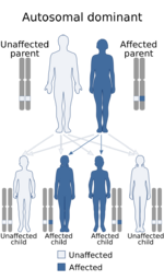 Gillespie syndrome is a heterogeneous disorder, and can be inherited in either an autosomal dominant or recessive manner.[4][6] Autosomal dominant inheritance indicates that the defective gene responsible for a disorder is located on an autosome, and only one copy of the gene is sufficient to cause the disorder, when inherited from a parent who has the disorder.[citation needed]
