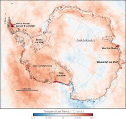 (As of 2022) the U.S. National Oceanographic and Atmospheric Administration says the global yearly average temperature has been warming at rate of 0.18 °C (0.32 °F) per decade since 1981.[12]