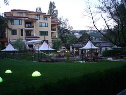 With the country's return to capitalism since 1989, upscale apartment buildings mushroomed both downtown and on uptown terraces overlooking the sea and the lake. Varna's vineyards (лозя, lozya), dating back perhaps to antiquity and stretching for miles around, started turning from mostly rural grounds dotted with summer houses or villa into affluent suburbs[|permanent dead link|dead link}}] sporting opulent villas and family hotels, epitomised by the researched postmodernist kitsch of the Villa Aqua.