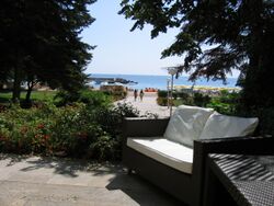 The beach resorts were rebuilt and expanded, fortunately without being as heavily overdeveloped as were other tourist destinations on the Bulgarian Black Sea Coast, and their greenery was mostly preserved. New modern office buildings started reshaping the old centre and the city's surroundings.[69][70]