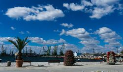 Economically, Varna is among the best-performing and fastest-growing Bulgarian cities. In 2016 the unemployment rate is 3.5% and the average salary is nearly 900lv (450€) per month.[57] The economy is service-based, with 61% of net revenue generated in trade and tourism, 16% in manufacturing, 14% in transportation and communications, and 6% in construction.[58] Financial services, particularly banking, insurance, investment management, and real-estate finance are booming. As of December 2008, the fallout of the global financial crisis has not yet been hard. The city is the easternmost destination of Pan-European transport corridor 8 and is connected to corridors 7 and 9 via Rousse. Major industries traditionally include transportation (Navibulgar, Port of Varna, Varna Airport), distribution (Logistics Park Varna[59]), shipbuilding (see also Oceanic-Creations), ship repair,[60] and other marine industries.