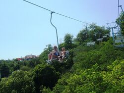 The city beaches, also known as sea baths (морски бани, morski bani), are dotted with hot (up to 55°С/131 °F) sulphuric mineral water sources (used for spas, swimming pools and public showers) and punctured by small sheltered marinas. Additionally, the 2.05 km (1.27 mi) long, 52 m (171 ft) high Asparuhov most bridge is a popular spot for bungee jumping. Outside the city are the Euxinograd palace, park and winery, the University of Sofia Botanical Garden (Ecopark Varna), the Pobiti Kamani rock phenomenon, and the medieval cave monastery, Aladzha.