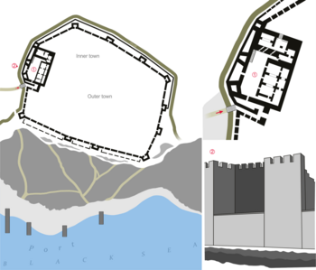 By 1878, Varna was an Ottoman city of mostly wooden houses in a style characteristic of the Black Sea coast, densely packed along narrow, winding lanes.[67][68] It was surrounded by a stone wall restored in the 1830s with a citadel, a moat, ornamented iron gates flanked by towers, and a vaulted stone bridge across the River Varna. The place abounded in pre-Ottoman relics, ancient ruins were widely used as stone quarries.