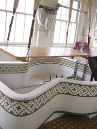 Balneotherapy (Latin: balneum "bath") is a method of treating diseases by bathing, a traditional medicine technique usually practiced at spas.[1] Since ancient times, humans have used hot springs, public baths and thermal medicine for therapeutic effects.[2] While it is considered distinct from hydrotherapy, there are some overlaps in practice and in underlying principles. Balneotherapy may involve hot or cold water, massage through moving water, relaxation, or stimulation. Many mineral waters at spas are rich in particular minerals such as silica, sulfur, selenium, and radium. Medicinal clays are also widely used, a practice known as 'fangotherapy'.