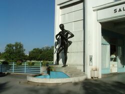 The statue of "A man breaking a walking crutch" in the spa town Piešťany (Slovakia) – an eloquent symbol of balneotherapy.