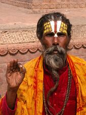 A Hindu sadhu, or ascetic wandering monk or holy man, in Kathmandu, Nepal