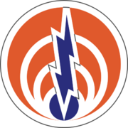 The shoulder sleeve insignia of the 1st Signal Command of the US Signal Corps. Orange, the colour of traditional signal fires, and white are the official colours of the Signal Corps.
