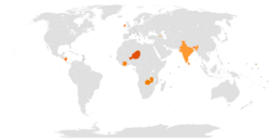 The Orange Free State in South Africa was an independent Boer republic in the late 19th century, then a British colony, then part of the Union of South Africa. The orange colour came from the Orange River, named for the Dutch House of Orange. The Dutch flag is in the canton.